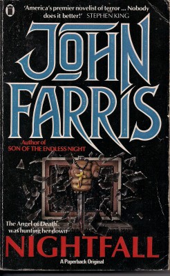 John Farris has had a long and prolific career, writing in both the horror and thriller genres, and NIGHTFALL is one of the latter. The story follows a terrifying killer named Angel who has the ability to force catatonic states, and is in a mental institution for two murders and the attempted murder of his wife.